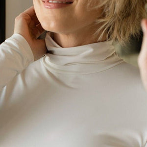 • Experience the timeless sophistication and indulgent comfort of our Long Sleeve Turtleneck Layering Top (Discontinued Style). Made with luxurious Italian microfiber, this top exquisitely falls over your curves with ease. The full turtleneck provides warmth during colder months, while its breathable, wrinkle-resistant fabric ensures all-day comfort. FINAL SALE - limited quantity remaining.